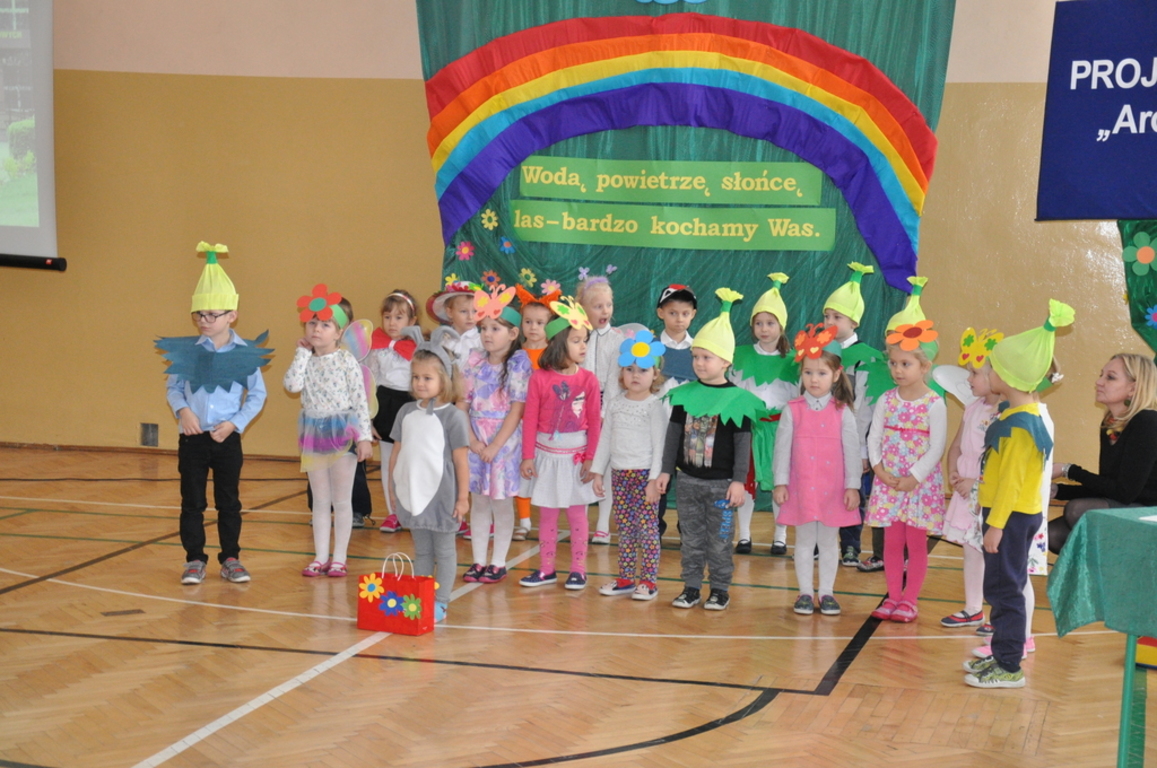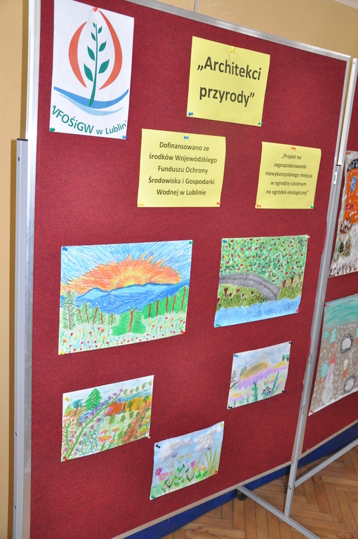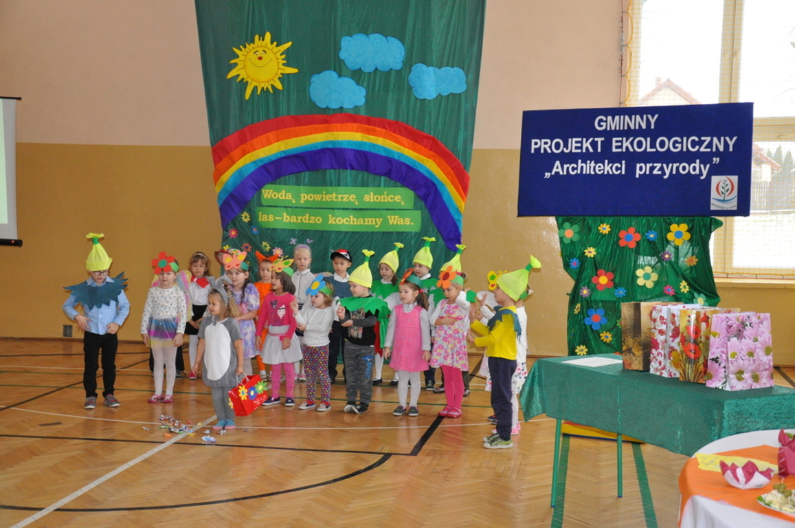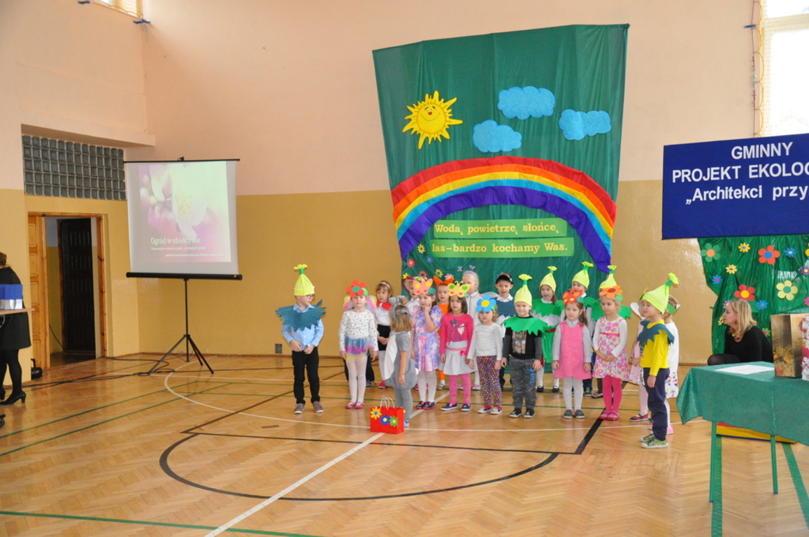 W okresie od lutego do grudnia 2016 roku Gmina Gościeradów realizowała Gminny projekt ekologiczny ,,Architekci przyrody” dofinansowany ze środków Wojewódzkiego Funduszu Ochrony Środowiska i Gospodarki Wodnej w Lublinie. Dzięki projektowi ,,Architekci przyrody” uczniowie szkół podstawowych w czasie ferii zimowych oraz podczas roku szkolnego, poprzez różnorodne działania, uzyskali wiedzę z zakresu ekologii. Projekt realizowany był przez wszystkie szkoły prowadzone przez Gminę Gościeradów tj.: PSP im. Jana Pawła II w Gościeradowie, PSP im. Marii Konopnickiej w Mniszku, PSP im. Józefa Twaroga w Księżomierzy oraz PSP im. Janiny Wierzchowskiej w Liśniku Dużym. W jego ramach zrealizowane zostały następujące działania: atrakcyjny program ferii zimowych, 2 wycieczki edukacyjne, 2 konkursy z zakresu edukacji ekologicznej z nagrodami dla uczniów oraz happening ekologiczny, a także specjalne wydanie gazetki przygotowanej przez każdą z 4 szkół. Za nami ostatnie z działań projektowych czyli Happening ekologiczny będący podsumowanie całego projektu. Gospodarzem tego działania była Publiczna Szkoła Podstawowa im. Jana Pawła II w Gościeradowie. Happening ekologiczny zaplanowany został na dzień 29 listopada b.r. Na spotkanie przybyli uczniowie szkół podstawowych wraz z dyrektorami i nauczycielami. Już od wejścia można było obejrzeć wystawę plakatów przygotowanych przez uczniów w trakcie ferii zimowych oraz ,,żywą” wystawę ,,Zioła w doniczkach”. Całą uroczystość poprowadziła p. Anna Drwal – dyrektor PSP w Gościeradowie. Zgodnie z harmonogramem uczniowie z każdej szkoły przygotowali występy i inscenizacje dotyczące ochrony przyrody, podczas których dzieci zaprezentowały swoje spojrzenie na sprawy ekologii i poczucie humoru. Kolejnym punktem programu był koncert piosenki o tematyce ekologicznej, podczas którego zaprezentowany został bardzo ciekawy repertuar. Wszystkie szkoły przygotowały i przedstawiły prezentacje multimedialne ,,Ogród w obiektywie”. Po części artystycznej uczestnicy spotkania zaproszeni zostali do degustacji zdrowych i ekologicznych potraw przygotowanych przez uczniów z każdej szkoły. Przy okazji kosztowania pyszności można było otrzymać ulotki promujące zioła. Na zakończenie spotkania podsumowującego sekretarz gminy – Jarosław Czerw wraz z dyrektor – Anną Drwal wręczyli przedstawicielom szkół podstawowych biorących udział w projekcie nagrody.