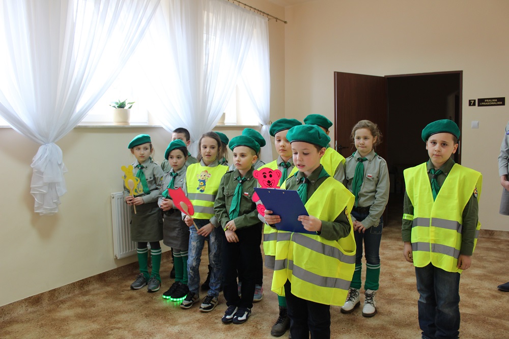 Marzec i kwiecień w gminie Gościeradów upłynęły pod znakiem bezpieczeństwa. Od początku marca w naszej Gminie realizowany jest program BEZPIECZNY PATROL. Pierwszą akcją realizowaną w ramach tego programu była akcja „WIDOCZNY= BEZPIECZNY”, która na celu miała edukację w zakresie bezpieczeństwa w ruchu drogowym. W akcję zaangażowali się harcerze, zuchy oraz szkoły z terenu Gminy Gościeradów. Przez cały miesiąc na terenie Gminy spotkać można było grupy młodzieży w charakterystycznych zielonych, odblaskowych kamizelkach z napisem „BEZPIECZNY PATROL” rozdające odblaski, ulotki oraz przeprowadzające rozmowy z napotkanymi mieszkańcami. W ciągu czterech tygodni uczestnikom akcji udało się rozdać ok 1500 ulotek oraz 1300 odblasków. Wsparciem merytorycznym w tej akcji byli funkcjonariusze Komendy Powiatowej Policji w Kraśniku wraz z Komendantem Powiatowym Policji w Kraśniku nadkom. Markiem Tchórzem. Część odblasków oraz kamizelek pozyskaliśmy od Wojewódzkiego Ośrodka Ruchu Drogowego w Lublinie. Akcja zakończyła się podsumowaniem, na którym wszystkie grupy w niej uczestniczące zaprezentowały swoje dokonania oraz odebrały podziękowania od Wójta Gminy.