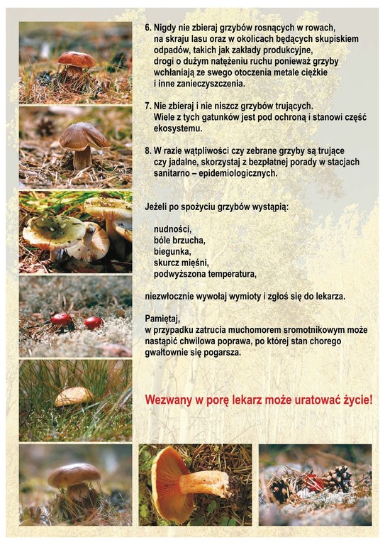 Pamietaj!! Zbieraj wyłącznie grzyby, co do których nie masz jakichkolwiek wątpliwości, że są jadalne (warto korzystać z atlasów).