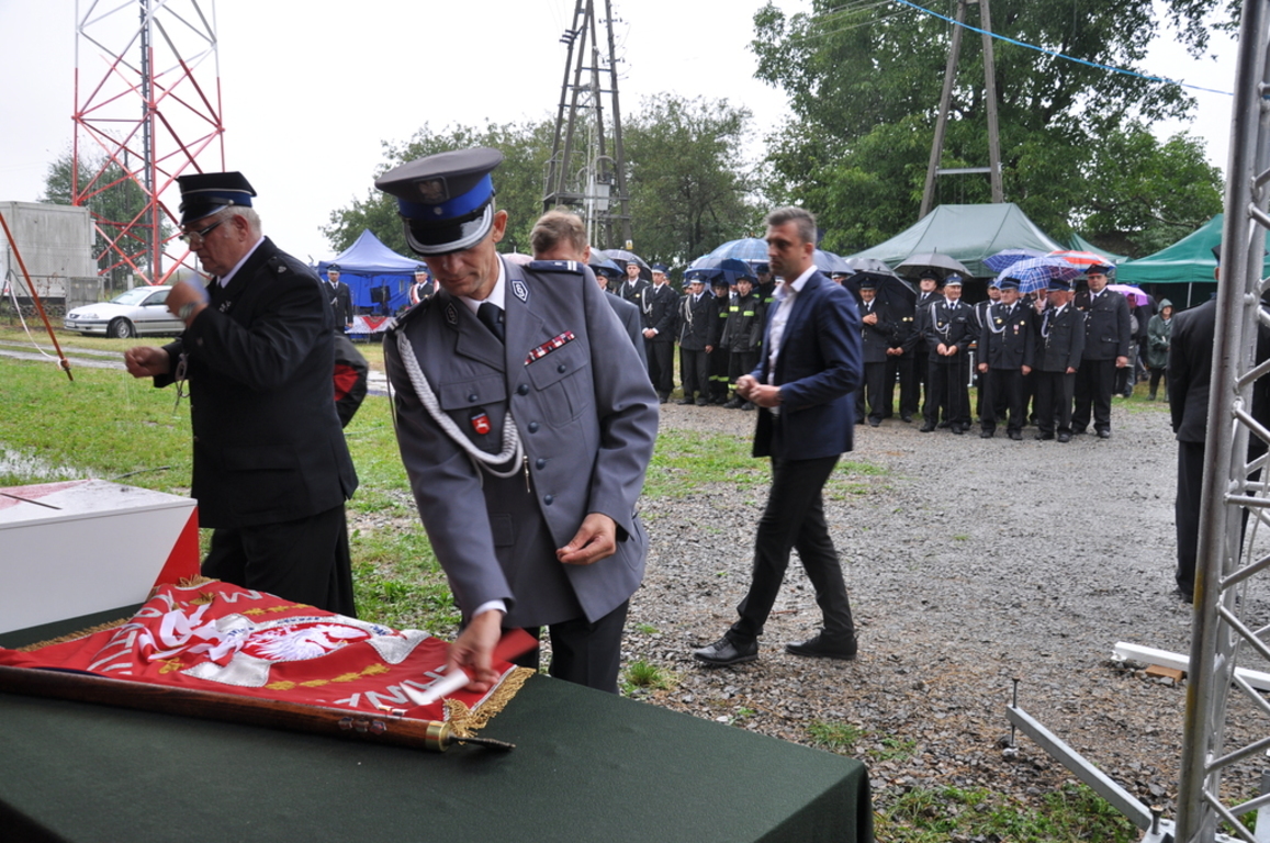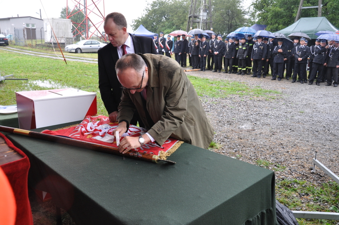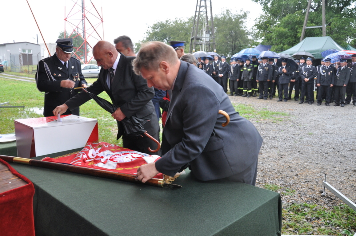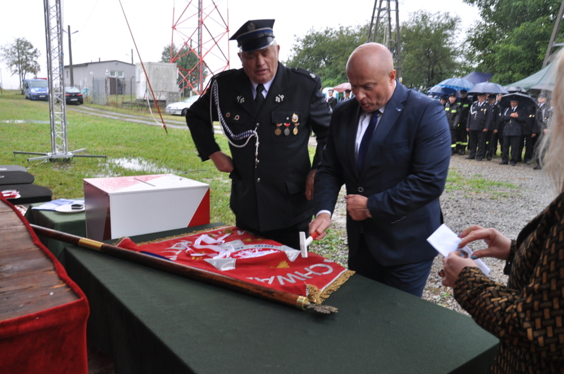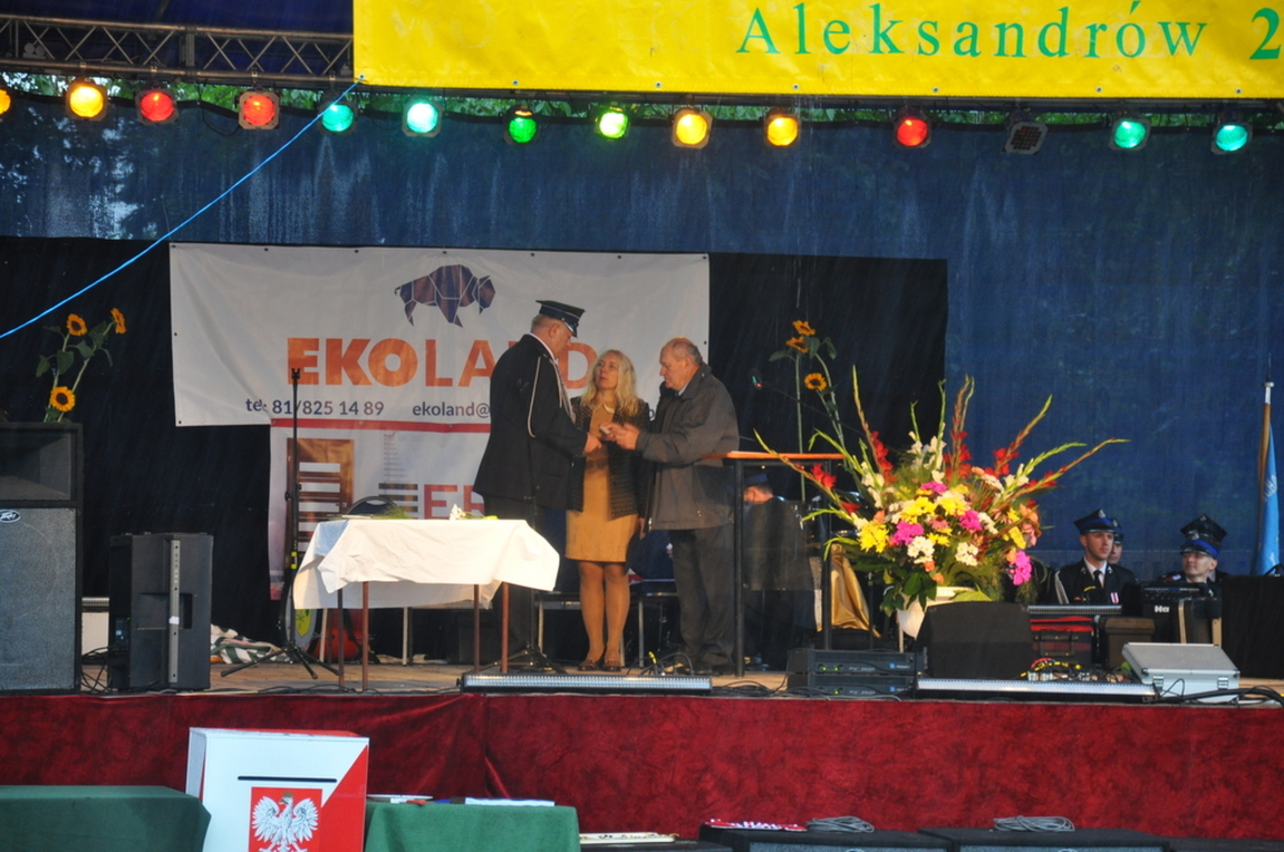 W trakcie uroczystości jednostce OSP w Aleksandrowie wręczony został sztandar, a zasłużeni strażacy zostali uhonorowani odznaczeniami. Sołtys Aleksandrowa, będący jednocześnie Prezesem OSP w Aleksandrowie Jan Adamczyk został uhonorowany Medalem Starosty. Pozostali strażacy otrzymali odznaczenia w następujących kategoriach: Złoty Medal Za Zasługi Dla Pożarnictwa wręczono druhowi Jerzemu Wójcickiemu. Srebrny Medal Za Zasługi Dla Pożarnictwa wręczono druhom: Arkadiuszowi Adamczykowi, Stefanowi Bijakowi, Januszowi Kołodziejowi i Zbigniewowi Porębskiemu.