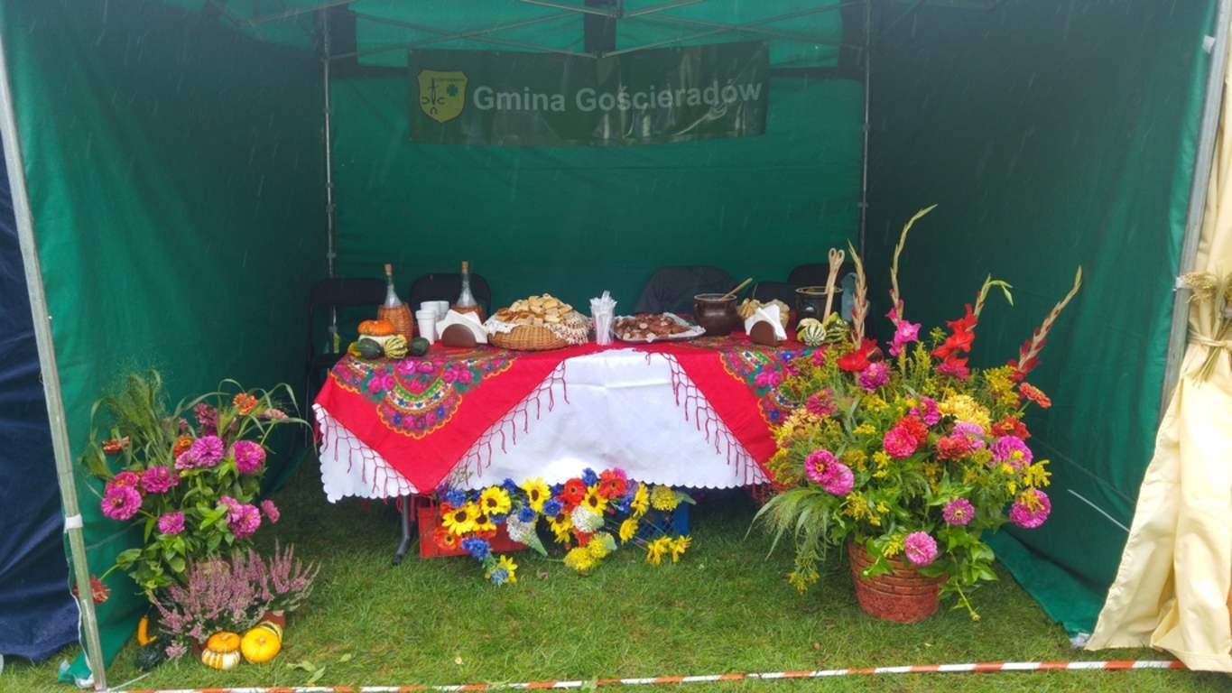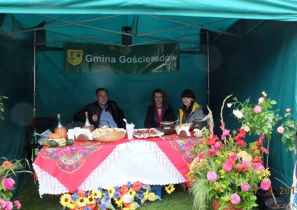 Po dożynkach gminnych w Aleksandrowie nadszedł czas, by gmina Gościeradów zaprezentowała się na Dożynkach Powiatowych. W dniu 3 września 2017r.przedstawiciele naszej Gminy wzięli udział w Dożynkach Powiatowych w Kraśniku. W przygotowaniu stoiska Gminy Gościeradów wsparła nas mieszkanka naszej gminy pani Maria Mastalerz. Oprócz dekoracji stale goszczących na stoiskach dodatkiem dopełniającym wystrój stoiska były występy Kapeli Ludowej z Gościeradowa, która wyróżniała nas spośród innych stoisk. Miłym zakończeniem dnia było ogłoszenie wyników Powiatowego Konkursu na Wieniec Dożynkowy, w którym Koło Gospodyń Wiejskich z Suchodół zajęło II miejsce, drugi z wieńców z Gminy Gościeradów przygotowany przez Księżomierz Kościelną otrzymał dyplom. Rozstrzygnięto także konkurs na „Najładniejsze stoisko promocyjne”, w którym zajęliśmy II miejsce.