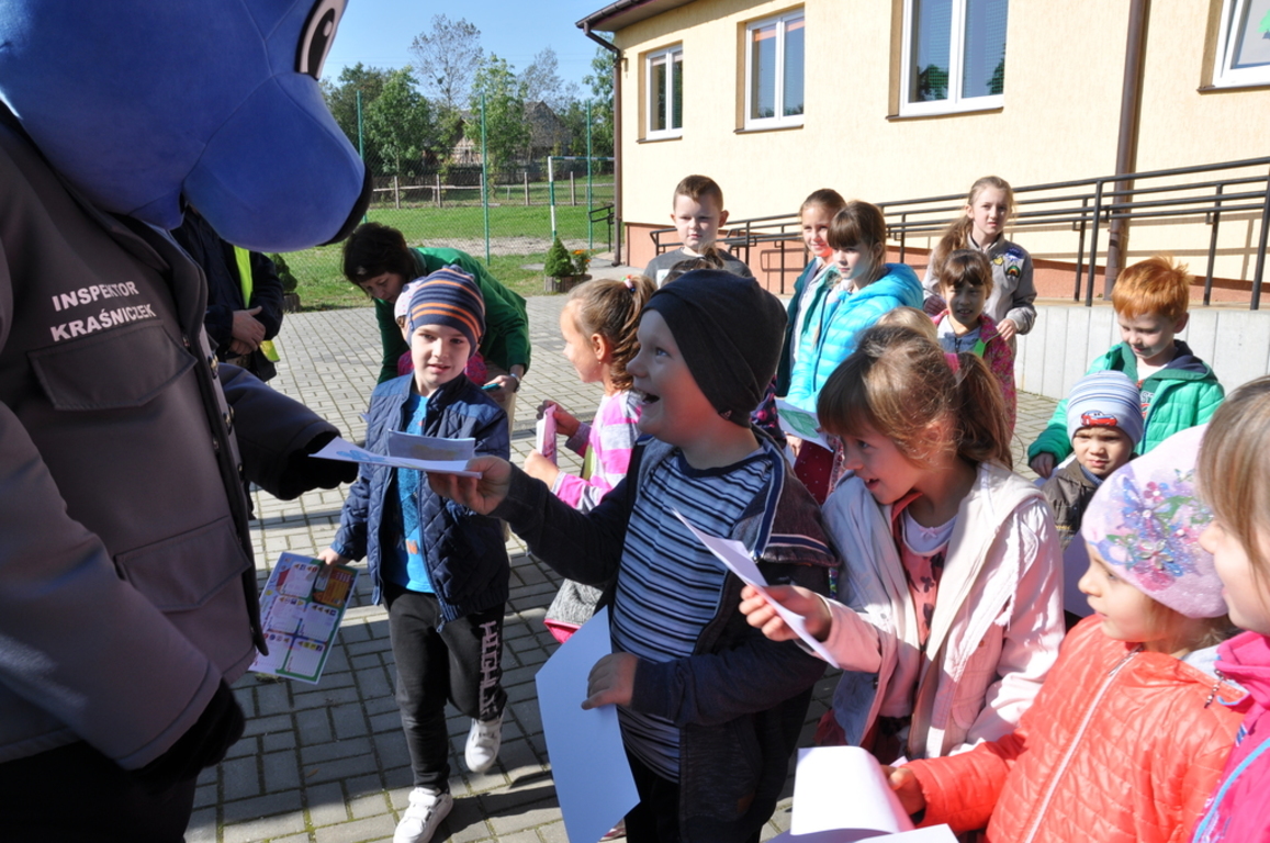 29 Września 2017r. w Szkole Podstawowej w Mniszku przeprowadzona została po raz kolejny akcja Bezpieczna Droga do Szkoły i Bezpieczny Patrol. Funkcjonariusze Policji z Kraśnika po przeprowadzeniu krótkiej lekcji o zasadach bezpieczeństwa przeszli wraz z uczniami na plac obok szkoły w celu przećwiczenia bezpiecznego przechodzenia przez jezdnie. Po zakończonej lekcji dzieciom zostały wręczone plany lekcji.