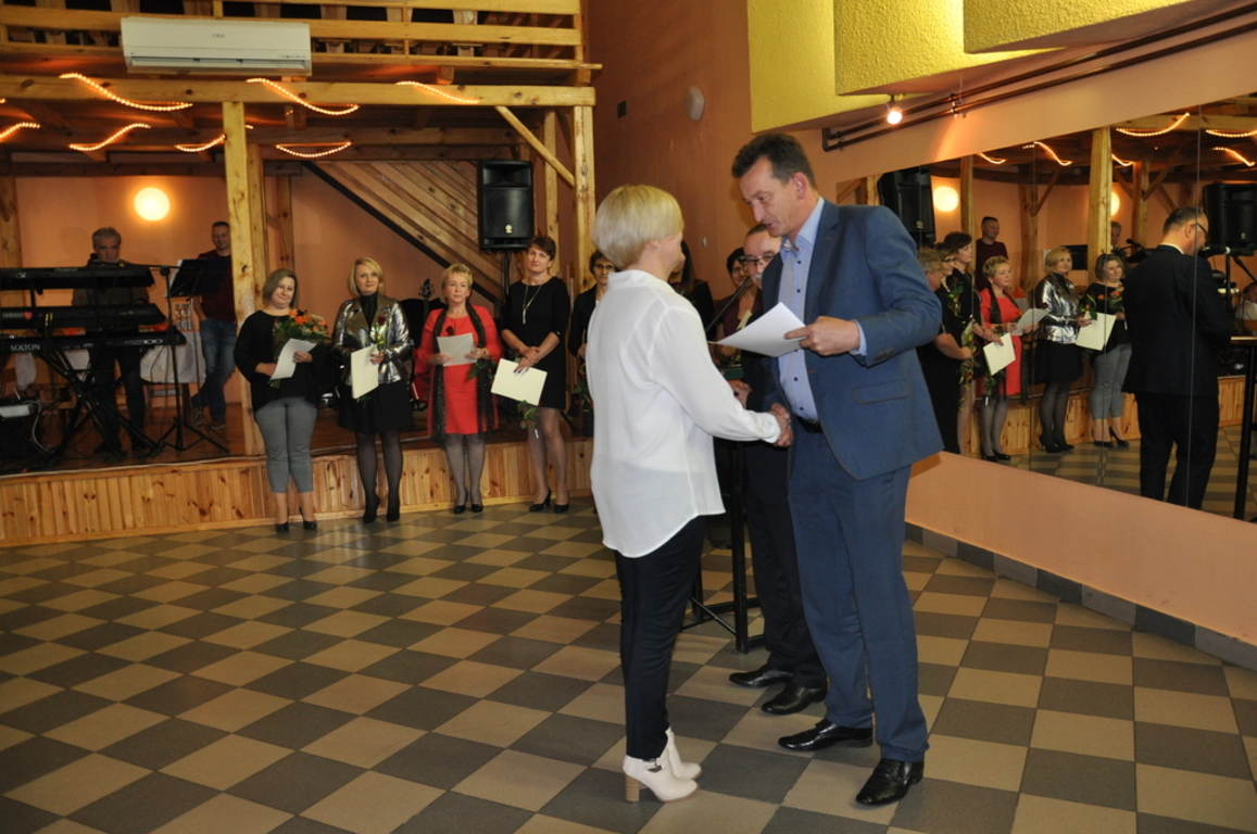 Wspólne świętowanie Dnia Edukacji Narodowej stało się już tradycją w naszej gminie. Dnia 6 października b.r. do restauracji ,,Bajka” w Gościeradowie na zaproszenie Wójta Gminy Gościeradów – Mariusza Szczepanika przybyli nauczycieli, pracownicy administracji i obsługi wraz z dyrektorami placówek i zaproszonymi radnymi Rady Gminy Gościeradów. Uroczystość zgromadziła społeczność szkół z ZPO im. Jana Pawła II w Gościeradowie, PSP im. Marii Konopnickiej w Mniszku, PSP im. Janiny Wierzchowskiej w Liśniku Dużym, ZS im. Józefa Twaroga w Księżomierzy oraz PSP im. ks. Karola Konopki w Szczecynie. Wszystkich serdecznie przywitał wójt – Mariusz Szczepanik. Kulminacyjnym punktem spotkania było rozdanie nagród Wójta Gminy Gościeradów dla nauczycieli: