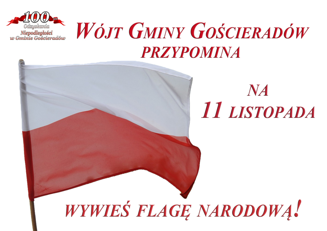 Wójt Gminy Gościeradów przypomina - na 11 listopada wywieś flagę narodową