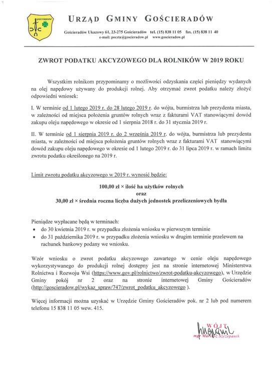 ZWROT PODATKU AKCYZOWEGO DLA ROLNIKÓW W 2019 ROKU