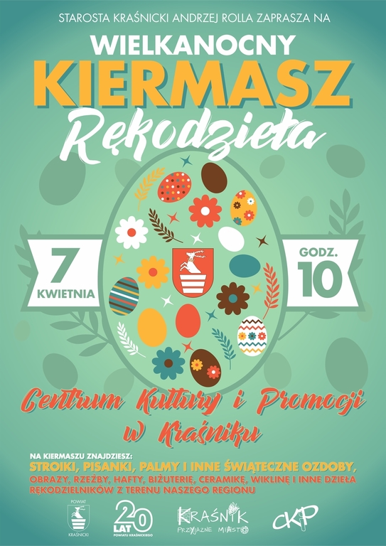 Zapraszamy 7 kwietnia br. (niedziela) od godz. 10.00 do CKiP w Kraśniku na Wielkanocny kiermasz rękodzieła.
