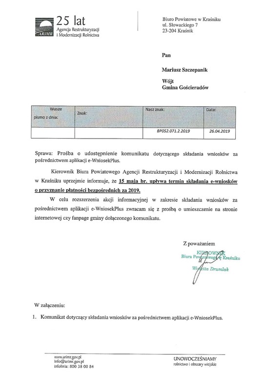 Agencja Restrukturyzacji i Modernizacji Rolnictwa oferuje wsparcie techniczne. W biurach powiatowych ARiMR dostępne są stanowiska