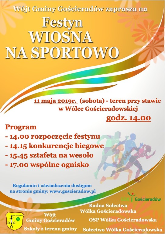 Serdecznie zapraszamy 11 maja br. (sobota) od godz. 14.00 na Wólkę Gościeradowską. Oprócz konkurencji sportowych do dyspozycji najmłodszych będą dmuchańce i malowanie twarzy.