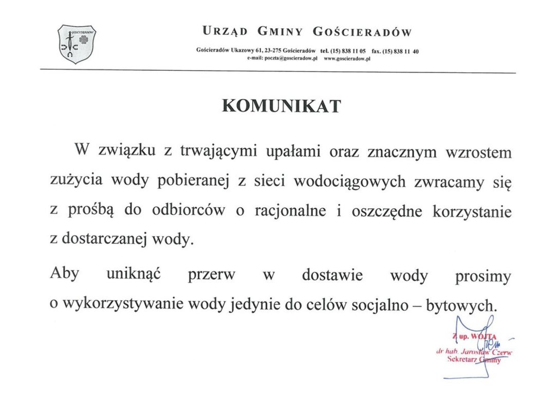 z prośbą do odbiorców o racjonalne i oszczędne korzystanie