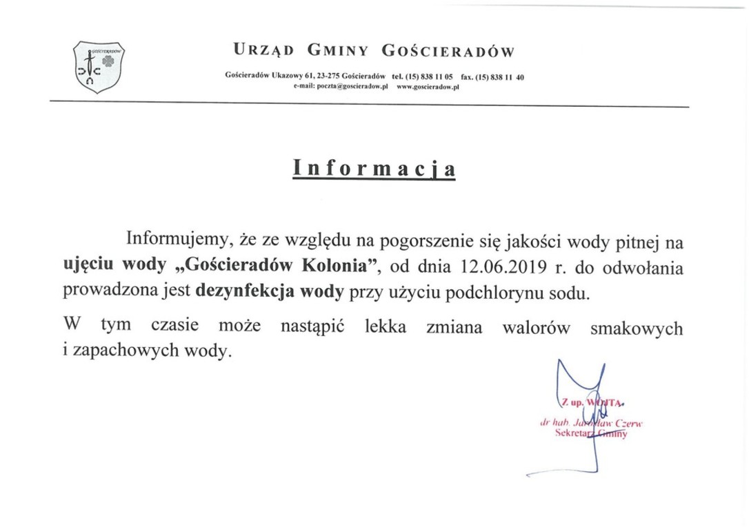 Informujemy, że ze względu na pogorszenie się jakości wody pitnej na