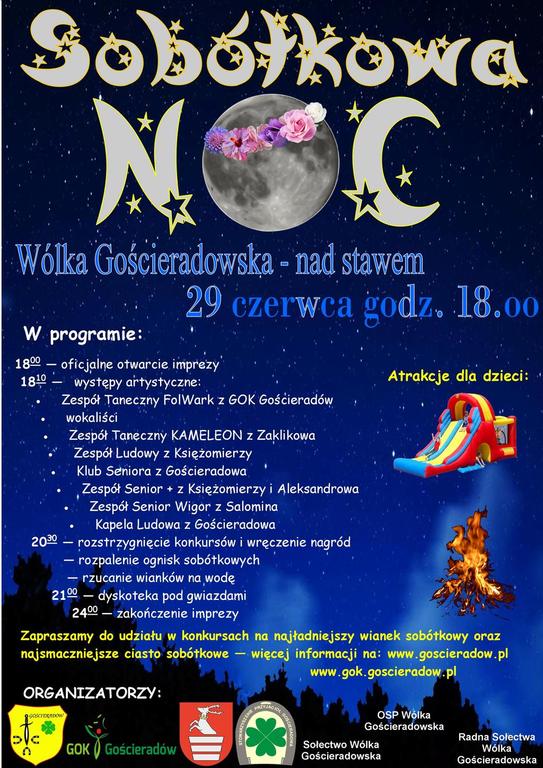 Serdecznie zapraszamy 29 czerwca 2019r. od godz. 18.00 na Wólkę Gościeradowską oraz zachęcamy do uczestnictwa w konkursie na sobótkowy wianek oraz sobótkowe ciasto