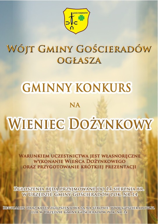Wójt Gminy Gościeradów ogłasza Gminny Konkurs na Wieniec Dożynkowy.