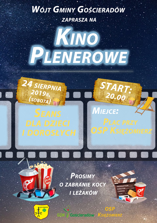 Serdecznie zapraszamy na Kino Plenerowe w sobote 24 sierpnia br. od godz. 20.00 na plac przy OSP Księżomierz