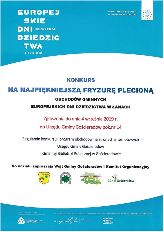 Karty zgłoszeniowe nalezy dostarczyc do 4 września br. do Urzędu Gminy Gościeradów pok. nr 14. Rozstrzygnięcie konkursu nastąpi podczas tegorocznch Europejskich Dni Dziedzictwa w Łanach przy Źródliskach.